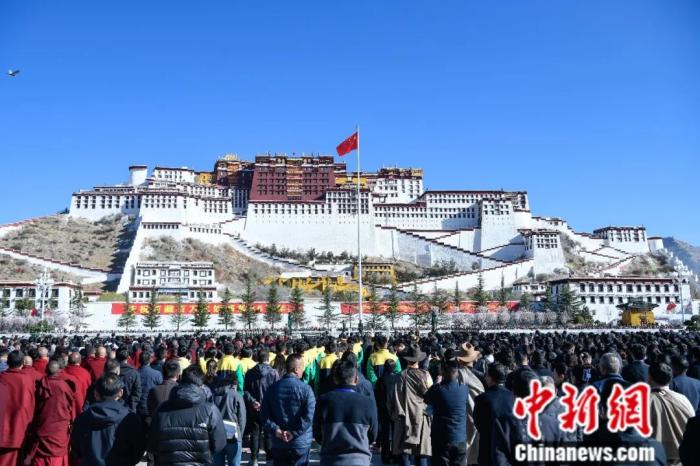 2025年3月28日,西藏各族各界人士聚集在拉薩布達拉宮廣場,參加西藏百萬農奴解放66周年紀念活動。中新社記者 貢嘎來松 攝