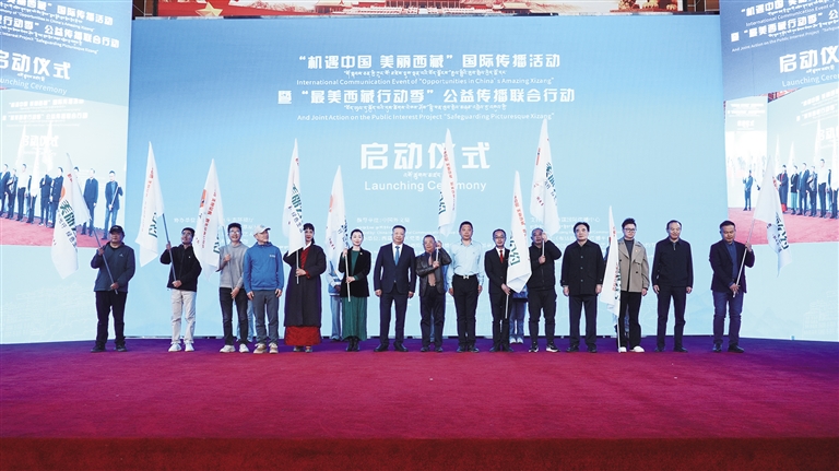 嘉賓共同啟動“最美西藏行動季”公益?zhèn)鞑ヂ?lián)合行動。 圖由西藏自治區(qū)黨委宣傳部提供