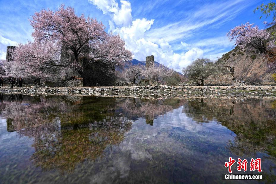 秀巴古堡位于西藏林芝市工布江達(dá)縣,是古代的軍事設(shè)施,距今已有1600多年的歷史。時(shí)下,古堡之下遍布的桃花競(jìng)相綻放,粉白桃花點(diǎn)綴著滄桑古堡,景色壯麗。圖為4月5日,游客在秀巴古堡下拍照。中新社記者 李林 攝
