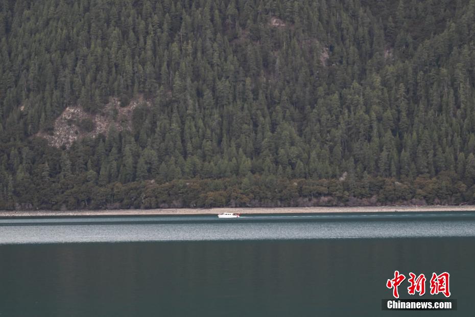 4月6日,西藏林芝工布江達(dá)縣巴松措景區(qū)游人如織。春日里,湛藍(lán)湖水與巍峨雪山相映成趣,游客游玩湖心島或乘船游覽,沉醉在這湖光山色中。圖為巴松措里的游船。中新社記者 貢嘎來(lái)松 攝
