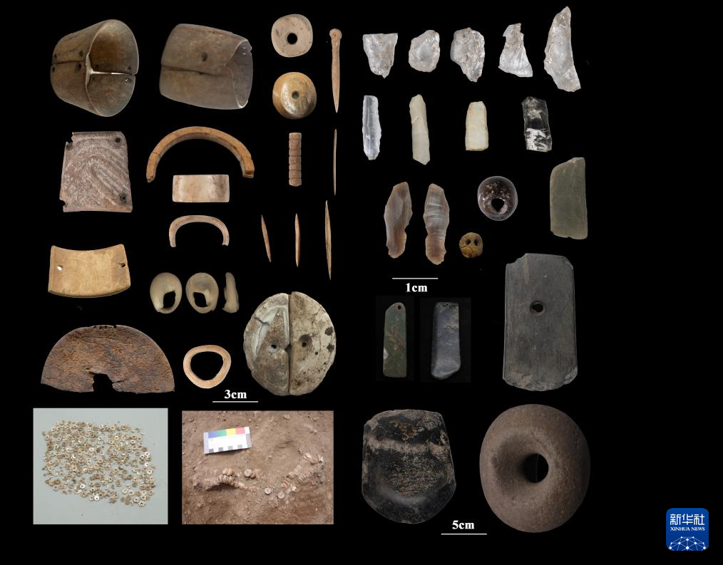 瑪不錯遺址第一期出土遺存典型骨器、石器、蚌器、滑石珠等。(西藏自治區(qū)文物保護研究所供圖)