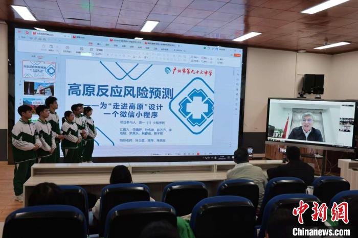 圖為四川大學(xué)華西醫(yī)院院長(zhǎng)、高原醫(yī)學(xué)中心主任羅鳳鳴教授通過(guò)視頻連線(xiàn)點(diǎn)評(píng)、指導(dǎo)高中生的微信小程序作品。廣州97中 供圖