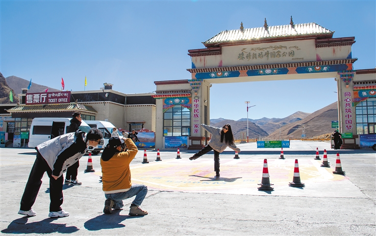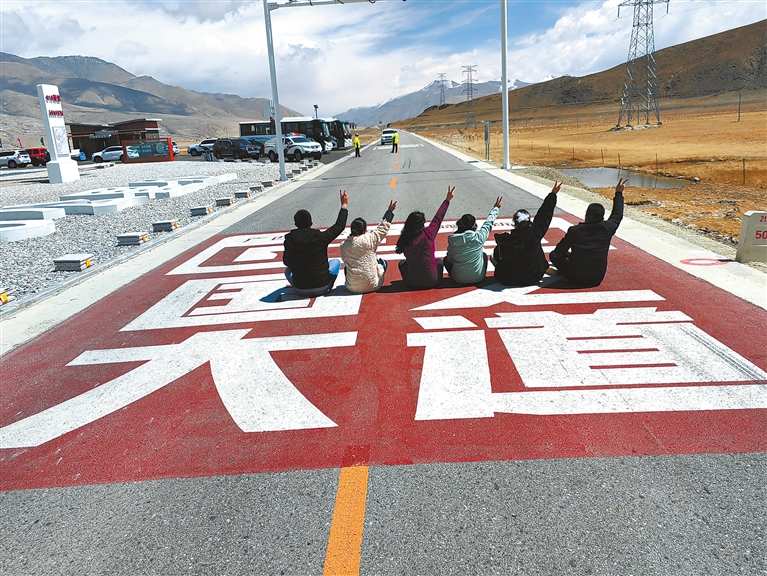 圖為游客在219國道5000公里打卡點(diǎn)拍照打卡。記者 旦增嘎瓦 扎西頓珠 攝