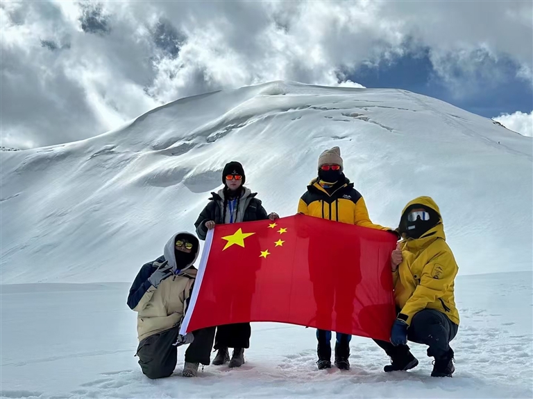 鄒師思告訴記者:“登山過程中,我們團(tuán)隊(duì)展現(xiàn)了高度的專業(yè)性與協(xié)作力。學(xué)院領(lǐng)導(dǎo)提前提供物資與精神支持,專業(yè)教練指導(dǎo)徒步與技術(shù)訓(xùn)練。在海拔5500—6000米段,隊(duì)伍統(tǒng)一行軍節(jié)奏,避免體溫流失或體力透支;登頂時,訓(xùn)練突出者率先觸頂,為體力較弱者提供鼓勵與幫助。”她感慨:“團(tuán)隊(duì)協(xié)作是登頂?shù)年P(guān)鍵,真正的勇氣源于科學(xué)準(zhǔn)備與戰(zhàn)略堅(jiān)持?!?/p>