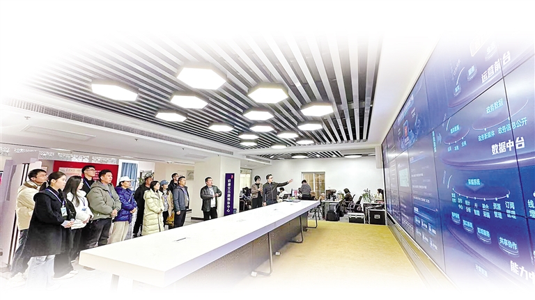 圖為瓊結(jié)縣宣傳思想文化系統(tǒng)“鄉(xiāng)村數(shù)字文化”考察組在湖北省宜昌市三峽融媒體中心參觀學習。 記者 次仁平措 本報通訊員 倫珠澤仁 攝