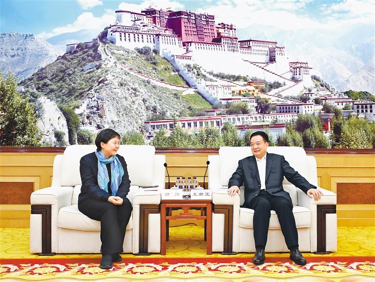 王君正代表自治區(qū)黨委、政府對謝力一行專程赴藏開展慰問演出表示歡迎,對中國文聯(lián)長期以來給予西藏的關(guān)心支持表示感謝。他說,黨的十八大以來,以習(xí)近平同志為核心的黨中央高度重視西藏工作,習(xí)近平總書記多次作出重要指示批示,為西藏明確了“穩(wěn)定、發(fā)展、生態(tài)、強邊”四件大事,提出了長治久安和高質(zhì)量發(fā)展的戰(zhàn)略目標(biāo),為我們做好工作指明了前進方向、提供了根本遵循。十屆自治區(qū)黨委深入貫徹落實習(xí)近平總書記關(guān)于西藏工作的重要指示和新時代黨的治藏方略,持之以恒抓好“穩(wěn)定、發(fā)展、生態(tài)、強邊”四件大事落實,努力推動經(jīng)濟社會發(fā)展各項事業(yè)不斷取得新成績,長治久安的基礎(chǔ)更加穩(wěn)固,高質(zhì)量發(fā)展保持良好勢頭,主要經(jīng)濟指標(biāo)增速位居全國前列,生態(tài)保護扎實推進,邊境地區(qū)建設(shè)不斷加強,民生福祉持續(xù)增進,全社會呈現(xiàn)出一派欣欣向榮的良好發(fā)展景象。