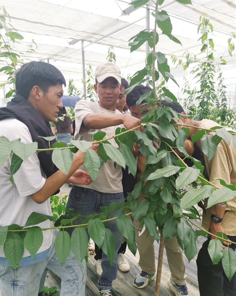 那段時間,他查閱了大量資料,進(jìn)行了多次實地調(diào)研,提出了引進(jìn)山東、陜西等地品質(zhì)高、產(chǎn)量好且抗病蟲害果樹的想法。他解釋道:“引進(jìn)這些品種,一方面可以大大降低病蟲害的風(fēng)險,提高產(chǎn)量和品質(zhì)。另一方面,通過研究水果本身的生長規(guī)律,選擇不同的品種進(jìn)行合理配置,能達(dá)到相互促進(jìn)的效果?!苯?jīng)過一段時間的試種,格桑群培的想法取得了顯著成效,得到了大家的高度贊譽。