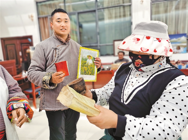 村民為藏北牧人文化館捐獻(xiàn)“老物件”。