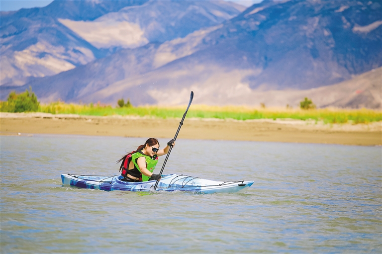 皮劃艇比賽環(huán)節(jié),運(yùn)動(dòng)員在雅魯藏布江上劈波斬浪。