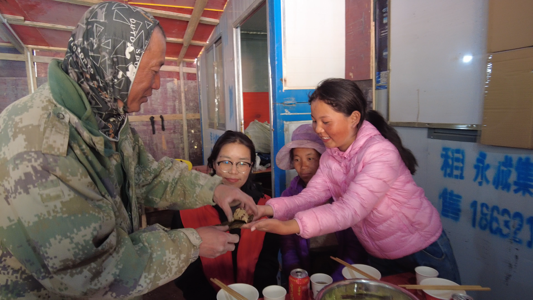 端午前夕,這份情誼化作最美的畫面。5月29日,康孔村飄著酥油香與粽葉青。村民準(zhǔn)備了酥油茶、水果,施工隊(duì)也擺上四菜一湯和粽子。大家圍坐在一起,你給我倒酥油茶,我給你遞粽子,歡聲笑語不斷。