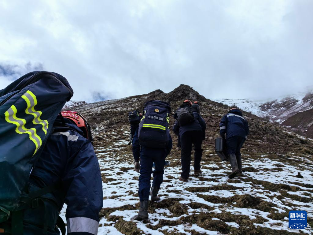 這是6月3日拍攝的森林消防戰(zhàn)士陪同專(zhuān)家組前往現(xiàn)場(chǎng)勘測(cè)。新華社發(fā)