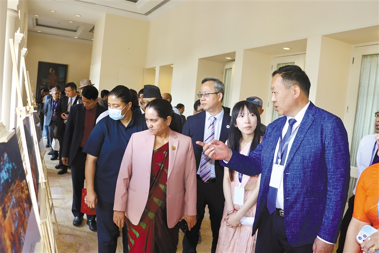 參加活動的尼泊爾嘉賓在會場拍攝。