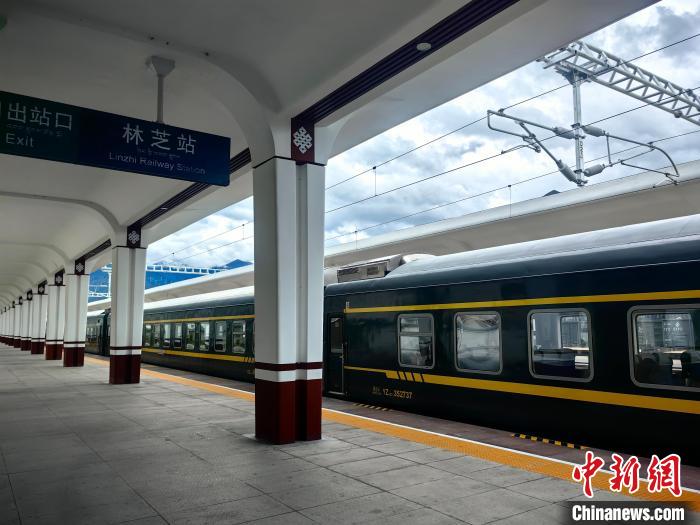圖為2025年7月1日,列車駛入西藏林芝火車站。張碩攝