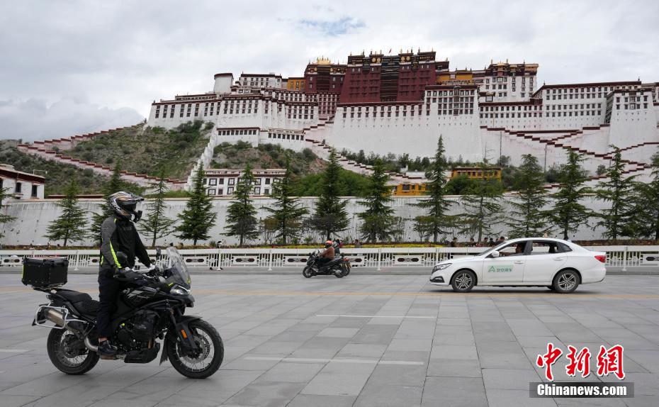 7月3日,摩旅愛好者自駕經(jīng)過布達(dá)拉宮。隨著暑期旅游旺季的到來,進(jìn)藏自駕游成為旅行愛好者的熱門選擇。房車愛好者、摩旅愛好者選擇自駕抵達(dá)拉薩,專程途經(jīng)布達(dá)拉宮打卡。中新社記者 李林 攝