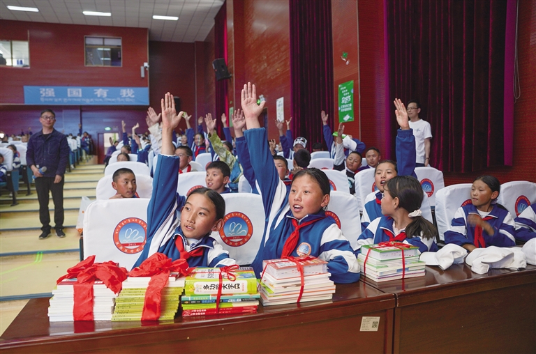 為慶祝中國共產(chǎn)黨成立104周年,迎接西藏自治區(qū)成立60周年,近日,自治區(qū)黨委宣傳部聯(lián)合自治區(qū)教育廳在達孜區(qū)中心小學開展“護苗2025·綠書簽”進校園誦讀經(jīng)典活動。