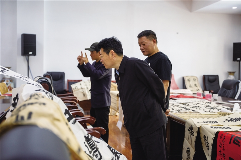 下午的漢文書法評(píng)選同樣精彩。兩百多幅參選作品,涵蓋楷書、行書、隸書、草書、篆書五種字體,風(fēng)格多樣,展現(xiàn)出扎實(shí)的書法功底和深厚的文化底蘊(yùn)。中國(guó)書協(xié)會(huì)員、西藏書協(xié)理事田中鶴認(rèn)真地審閱著每一幅作品,他感慨道:“活動(dòng)自啟動(dòng)便獲全國(guó)書法愛(ài)好者廣泛關(guān)注,參賽作品不僅數(shù)量可觀,質(zhì)量更值得肯定?!逼渲?,一等獎(jiǎng)的楷書作品工整端莊,緊扣“民族團(tuán)結(jié)”主題,既彰顯書法藝術(shù)魅力,又傳遞出“高原紅石榴”象征的團(tuán)結(jié)奮進(jìn)精神,給評(píng)審團(tuán)留下深刻印象。