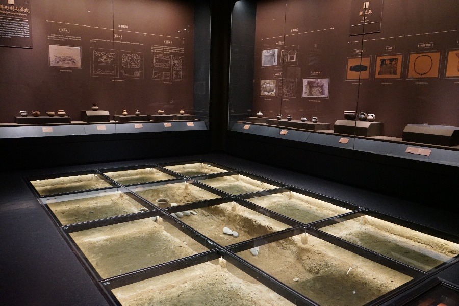 曲踏墓地目前共發(fā)現(xiàn)洞式墓葬8座,復(fù)原展示的即3號墓葬,坑深4.7米,坑口長2.3米,寬0.7米。在墓坑?xùn)|端填土表面發(fā)現(xiàn)石頭堆砌的簡易祭臺,內(nèi)放一個帶流陶罐,陶罐周邊散落一些羊骨,為一處祭祀墓主人的遺跡?!翱吹竭@樣的復(fù)原展示,讓我對考古發(fā)掘和歷史文化有了更直觀、科學(xué)的認識?!币晃徽趨⒂^的觀眾表示。