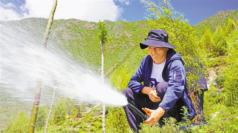 工程帶來的不僅是生態(tài)效益,更有可觀社會(huì)效益。項(xiàng)目實(shí)施以來,累計(jì)吸納3541人次墨竹籍群眾參與建設(shè)。從挖穴栽苗到日常養(yǎng)護(hù),當(dāng)?shù)厝罕姵蔀樯鷳B(tài)建設(shè)主力軍。達(dá)瓦次仁感慨:“在家門口就業(yè),每日收入200多元,還能參與家鄉(xiāng)綠化,內(nèi)心踏實(shí)又滿足。”