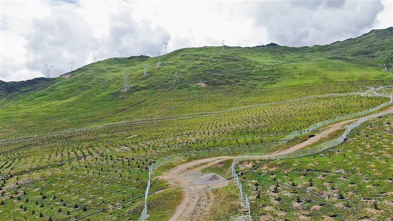 “歡迎來到南北山綠化工程現(xiàn)場(chǎng)!”指揮部工作人員頓珠迎面走來,熱情洋溢地說。他翻開隨身攜帶的工作日志,密密麻麻的記錄映入眼簾:“截至目前,我們已栽植161萬(wàn)余株苗木,種植穴和網(wǎng)圍欄等基礎(chǔ)工程全部完工?!表樦闹敢ィy灰色的網(wǎng)圍欄在晨光中閃爍,如鋼鐵長(zhǎng)城般蜿蜒于群山。