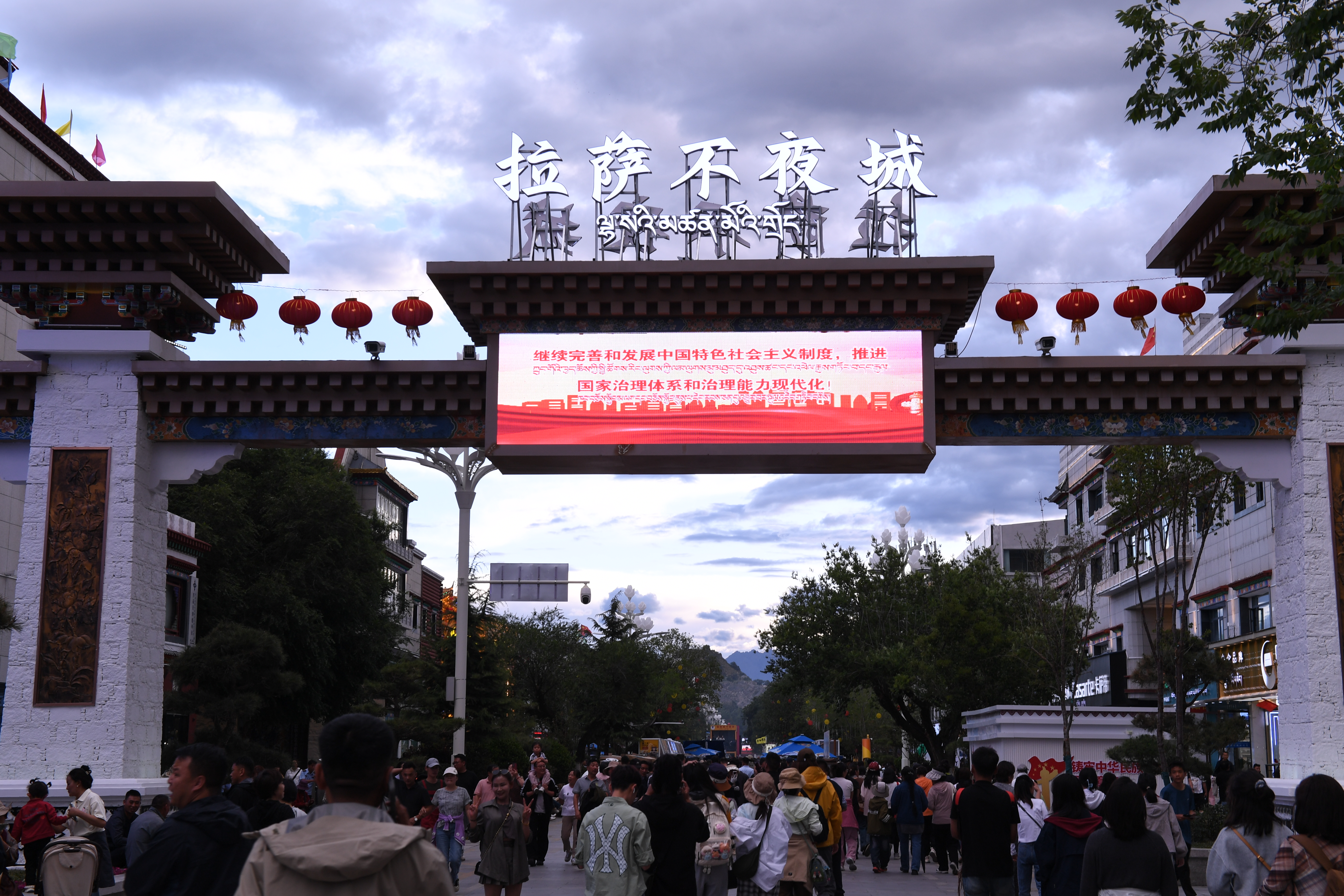 開街首日,藏式燈籠與LED光帶將整條街道裝點得宛如銀河落地,標志著拉薩正式邁入“全域全時旅游”新時代。