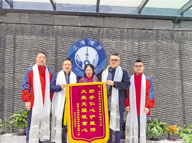 康復(fù)后的患者家屬給上海市援藏醫(yī)生送來錦旗表達感謝。