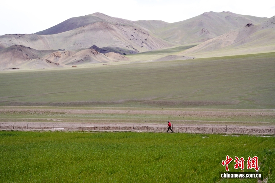 7月20日,在西藏阿里地區(qū)革吉縣文布當桑鄉(xiāng)的人工種草基地,一位農(nóng)牧民在巡視草場。為解決當?shù)囟旧笥貌堇щy,減輕天然草場壓力,2016年起文布當桑鄉(xiāng)規(guī)劃建設(shè)人工種草基地。截至2024年,已種植人工草場3590畝,草業(yè)收入229.3萬元人民幣,有效帶動當?shù)剞r(nóng)牧民就業(yè)創(chuàng)收和推動生態(tài)可持續(xù)發(fā)展。中新社記者 張祥毅 攝