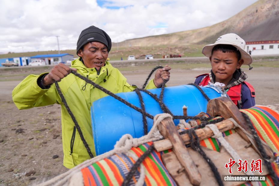7月21日,在岡仁波齊山腳下,牦牛運輸隊隊員往牦牛背上綁縛物資,準(zhǔn)備將其運輸至轉(zhuǎn)山徒步路線的補給站。岡仁波齊位于西藏阿里地區(qū)普蘭縣境內(nèi),是岡底斯山的主峰,也是藏傳佛教的神山之一,每年吸引眾多信徒前往轉(zhuǎn)山,并衍生出徒步旅行的經(jīng)典路線。每年來自國內(nèi)外的徒步旅行者為當(dāng)?shù)貏?chuàng)造就業(yè)機會的同時,也推動了文旅產(chǎn)業(yè)的發(fā)展。中新社記者 張祥毅 攝