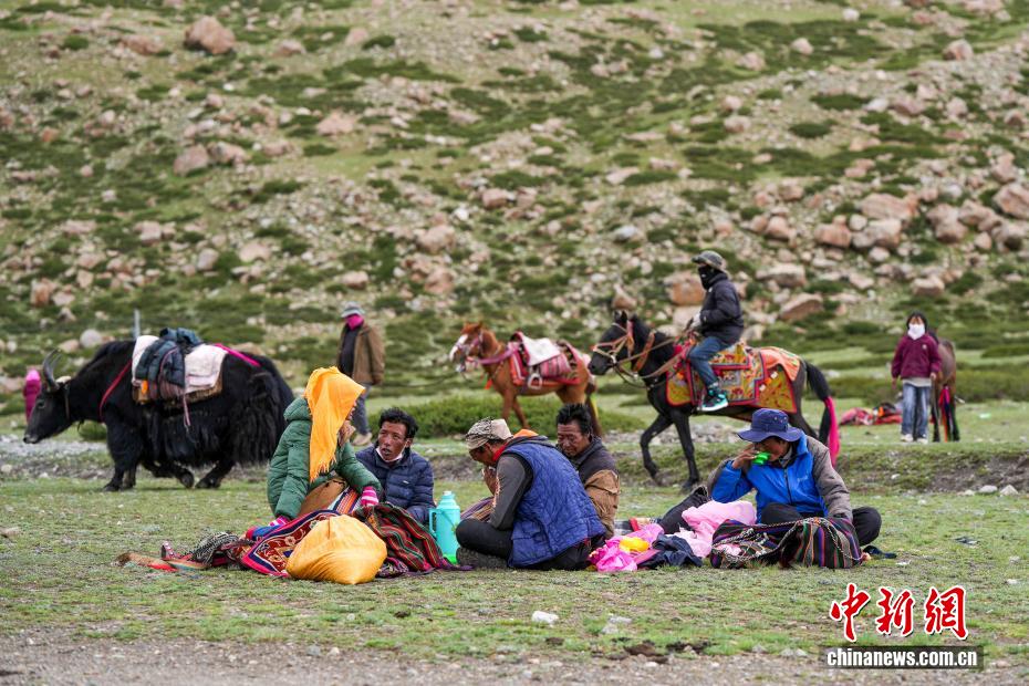 7月21日,徒步旅行者在岡仁波齊山腳做徒步前的準(zhǔn)備工作。岡仁波齊位于西藏阿里地區(qū)普蘭縣境內(nèi),是岡底斯山的主峰,也是藏傳佛教的神山之一,每年吸引眾多信徒前往轉(zhuǎn)山,并衍生出徒步旅行的經(jīng)典路線。每年來自國內(nèi)外的徒步旅行者為當(dāng)?shù)貏?chuàng)造就業(yè)機會的同時,也推動了文旅產(chǎn)業(yè)的發(fā)展。中新社記者 張祥毅 攝