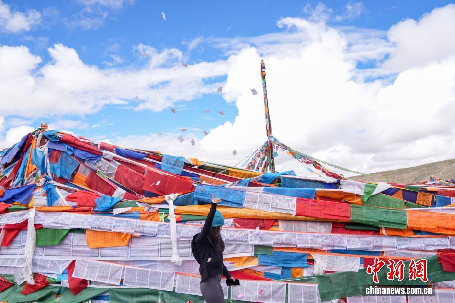 7月21日,一名游客在岡仁波齊山腳下的經(jīng)幡廣場游玩。岡仁波齊位于西藏阿里地區(qū)普蘭縣境內(nèi),是岡底斯山的主峰,也是藏傳佛教的神山之一,每年吸引眾多信徒前往轉(zhuǎn)山,并衍生出徒步旅行的經(jīng)典路線。每年來自國內(nèi)外的徒步旅行者為當(dāng)?shù)貏?chuàng)造就業(yè)機會的同時,也推動了文旅產(chǎn)業(yè)的發(fā)展。中新社記者 張祥毅 攝