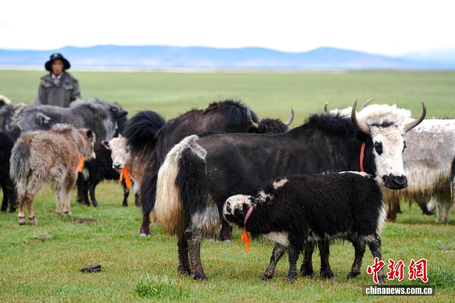 7月22日,在西藏阿里地區(qū)普蘭縣霍爾鄉(xiāng)瑪旁雍錯(cuò)濕地,一頭牦牛在喂養(yǎng)牛犢。為實(shí)現(xiàn)更大的經(jīng)濟(jì)效益,霍爾鄉(xiāng)近年來(lái)探索建立牦牛養(yǎng)殖專業(yè)合作社,按當(dāng)?shù)刈匀粭l件合理分配牦牛放牧地點(diǎn),并將牛奶進(jìn)行加工銷售,2023年該合作社的年總收入達(dá)到60余萬(wàn)元人民幣,帶動(dòng)牧民人均增收2萬(wàn)余元人民幣。中新社記者 張祥毅 攝