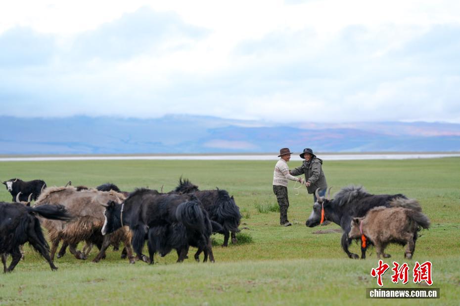 7月22日,在西藏阿里地區(qū)普蘭縣霍爾鄉(xiāng)瑪旁雍錯(cuò)濕地,牧民在放牧?xí)r交流。為實(shí)現(xiàn)更大的經(jīng)濟(jì)效益,霍爾鄉(xiāng)近年來(lái)探索建立牦牛養(yǎng)殖專業(yè)合作社,按當(dāng)?shù)刈匀粭l件合理分配牦牛放牧地點(diǎn),并將牛奶進(jìn)行加工銷售,2023年該合作社的年總收入達(dá)到60余萬(wàn)元人民幣,帶動(dòng)牧民人均增收2萬(wàn)余元人民幣。中新社記者 張祥毅 攝