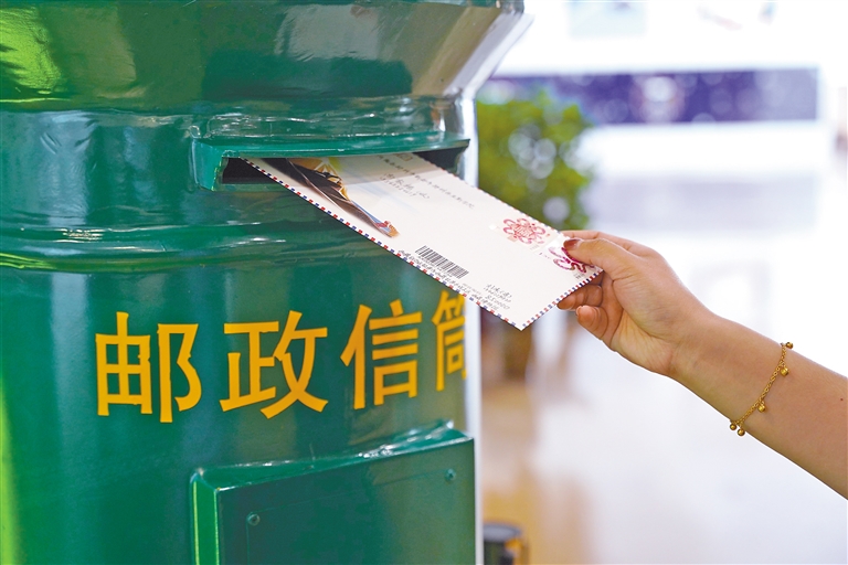 圖為游客正在寄出明信片。記者 鄭常容 攝