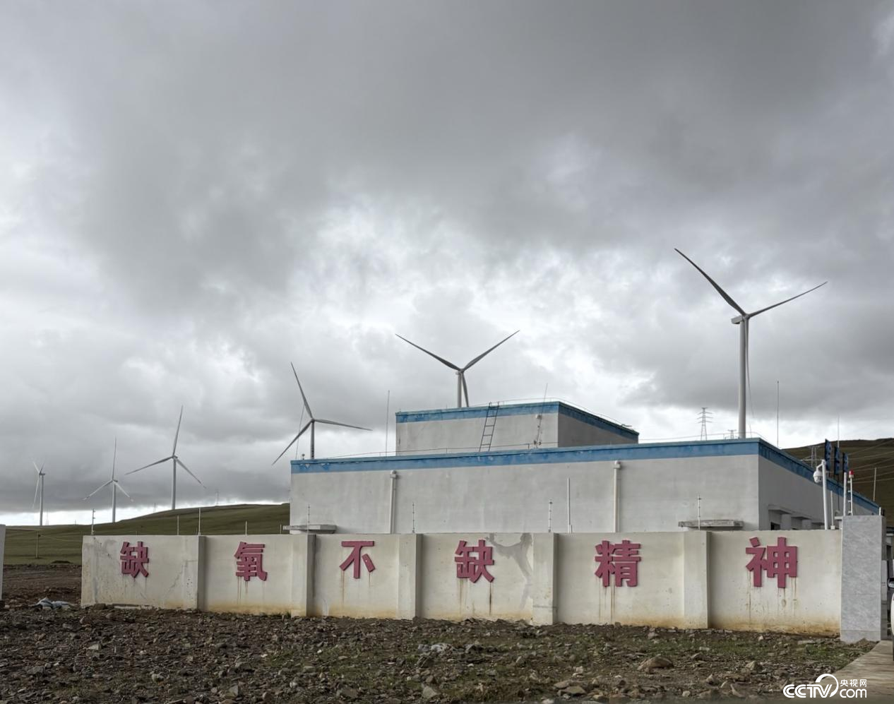 在哲古草原,巨大的風機葉片緩緩轉(zhuǎn)動,劃破長空。這里是三峽措美哲古風電場——全球海拔最高的在運行風電場,墻上“缺氧不缺精神”的標語,正是技術(shù)突破與綠色發(fā)展的信念的最好寫照。