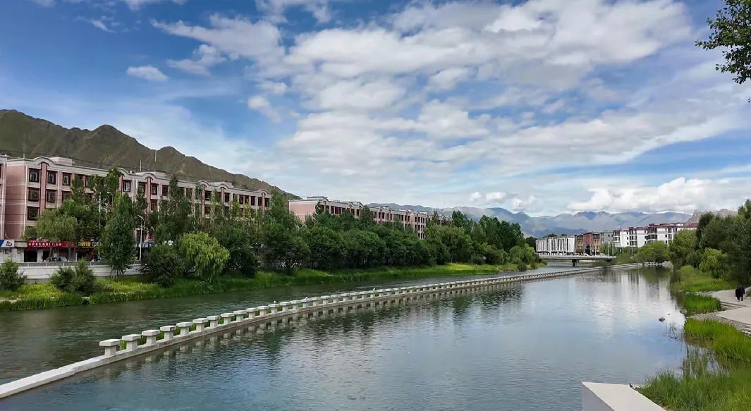 這片區(qū)域曾經(jīng)是荒灘,砂石裸露,垃圾堆積,不少地方道路還有斷點(diǎn)。為了解決這些問(wèn)題,自2024年1月至10月,拉薩市對(duì)總長(zhǎng)4.1公里的河道沿岸進(jìn)行生態(tài)治理與景觀改造提升。