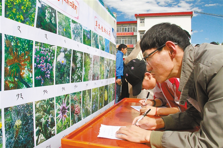 西藏藏醫(yī)藥大學(xué)學(xué)生參加藏醫(yī)藥草本植物認(rèn)藥知識(shí)競(jìng)賽。西藏藏醫(yī)藥大學(xué)提供