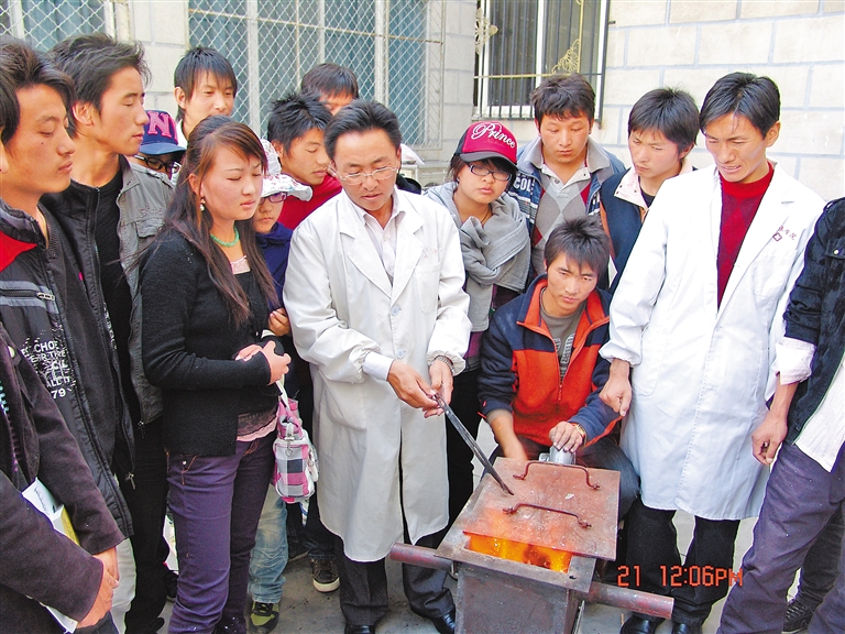 西藏藏醫(yī)藥大學(xué)開展藏藥金屬炮制和鍛灰工藝現(xiàn)場(chǎng)教學(xué)。西藏藏醫(yī)藥大學(xué)提供