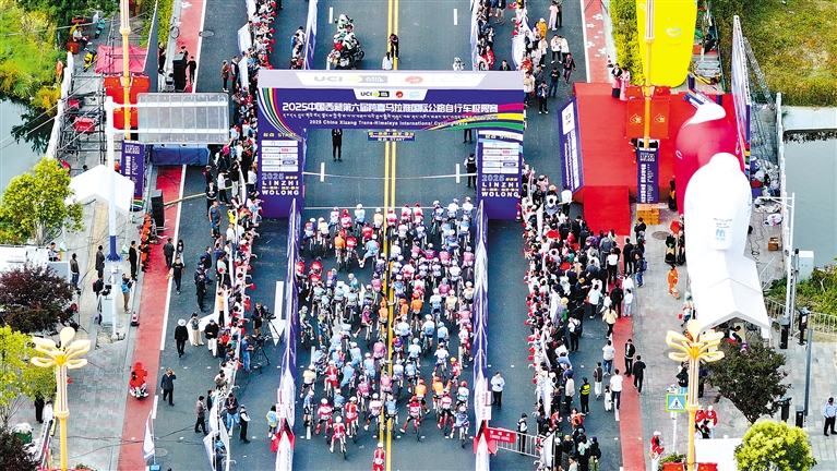 8月7日上午9時30分,發(fā)令槍鳴響,來自國內(nèi)外17支隊伍的100多名參賽選手,如離弦之箭般沖出林芝市巴宜區(qū)工布公園的起點(diǎn)線,正式開啟2025中國西藏第六屆跨喜馬拉雅國際公路自行車極限賽的競逐。