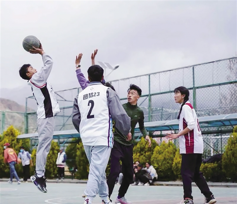 “十年前,整個(gè)拉薩能打球的地方兩只手都數(shù)得過(guò)來(lái),現(xiàn)在光是我們社區(qū)周邊就有3個(gè)標(biāo)準(zhǔn)化球場(chǎng)?!痹诶_市城關(guān)區(qū)奪底街道籃球場(chǎng)上,45歲的次仁達(dá)娃擦著汗水說(shuō)。他剛帶領(lǐng)社區(qū)代表隊(duì)打贏一場(chǎng)比賽,隊(duì)員平均年齡超過(guò)35歲,卻個(gè)個(gè)身手矯健。