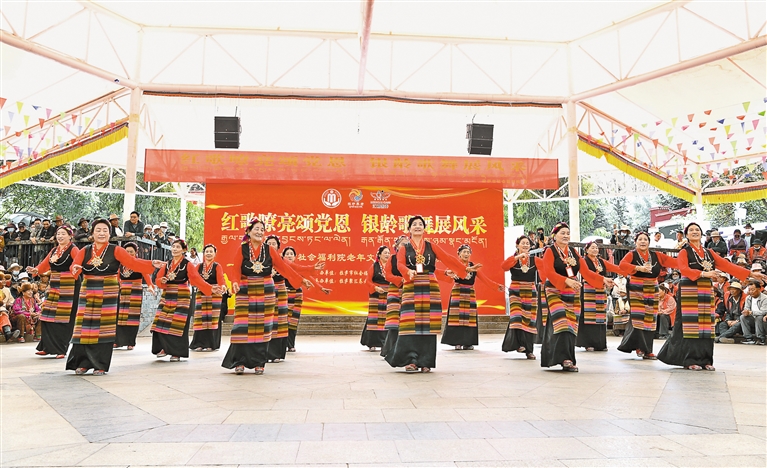 近日,拉薩市社會(huì)福利院在龍王潭公園舉辦“紅歌嘹亮頌黨恩,銀齡歌舞展風(fēng)采”主題活動(dòng)。活動(dòng)現(xiàn)場(chǎng),老年學(xué)員們通過紅歌聯(lián)唱、傳統(tǒng)鍋莊舞表演及民族手工藝品展示,全面展現(xiàn)“老年文化學(xué)堂”開設(shè)雙語、舞蹈、手工等課程的階段性成果。據(jù)了解,該活動(dòng)旨在推廣“文化養(yǎng)老”服務(wù)模式,吸引更多社會(huì)老人參與福利院特色課程?!?/p>