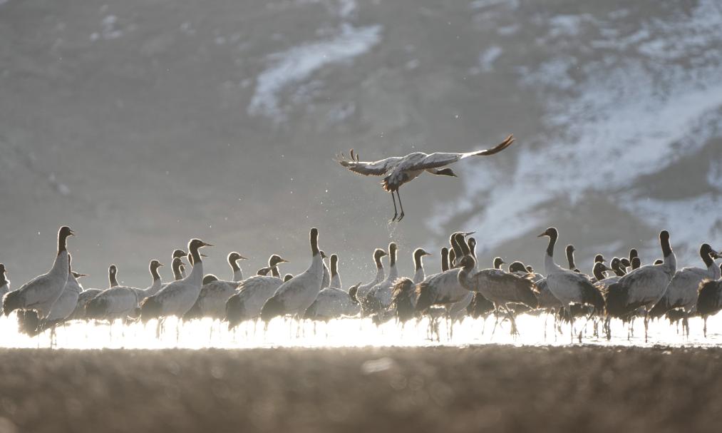黑頸鶴主要棲息在高原海拔2500米至5000米的草甸、沼澤地帶,是世界上唯一生長(zhǎng)、繁殖在高原的鶴類,也是國(guó)家一級(jí)保護(hù)動(dòng)物,有“高原仙子”的美稱。每年3月中下旬,黑頸鶴向北方各繁殖地遷徙;10月,開(kāi)始結(jié)群帶領(lǐng)幼鳥(niǎo)南遷至西藏林周等地越冬。