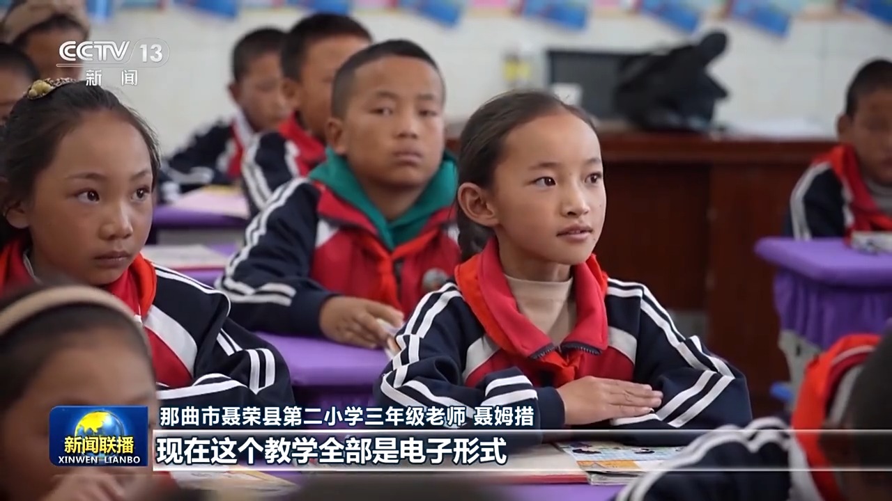 那曲市聶榮縣第二小學(xué)三年級老師 聶姆措:變化特別大,以前鄉(xiāng)鎮(zhèn)里面都是帳篷學(xué)校,黑板就是這么小的一個(gè)木板,冬天帳篷里面的話,手腳都是凍著的?,F(xiàn)在這個(gè)教學(xué)全部是電子形式,條件特別好。