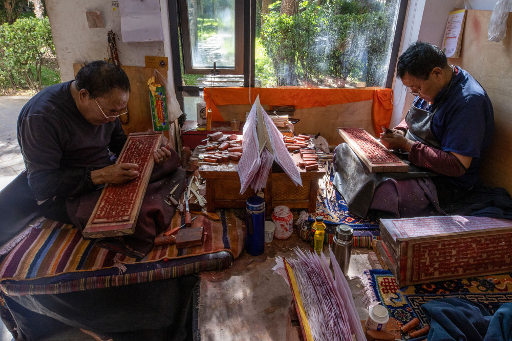 8月6日,一名雕刻師在雕刻中。西藏雪巴康雕版印刷制作技藝入選西藏自治區(qū)級非物質(zhì)文化遺產(chǎn)代表性項目名錄。