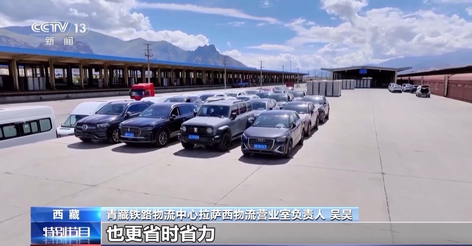 青藏鐵路物流中心拉薩西物流營(yíng)業(yè)室負(fù)責(zé)人 吳昊:像這種車型就是我們鐵路為了小汽車運(yùn)輸?shù)膶iT車型,裝小汽車能達(dá)到一百三四十輛。有的朋友喜歡把車輛拖到拉薩以后,開(kāi)車去周邊玩,也更省時(shí)省力。