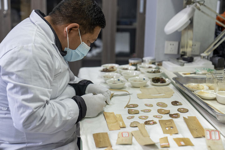 “貝葉經(jīng)修復(fù)技術(shù)在全世界沒有統(tǒng)一的標(biāo)準(zhǔn),也沒有具體的修復(fù)流程。我們是一步步探索和創(chuàng)新,才取得了重要突破?!辈歼_(dá)拉宮管理處文??乒ぷ魅藛T冷本凱介紹說(shuō)。
