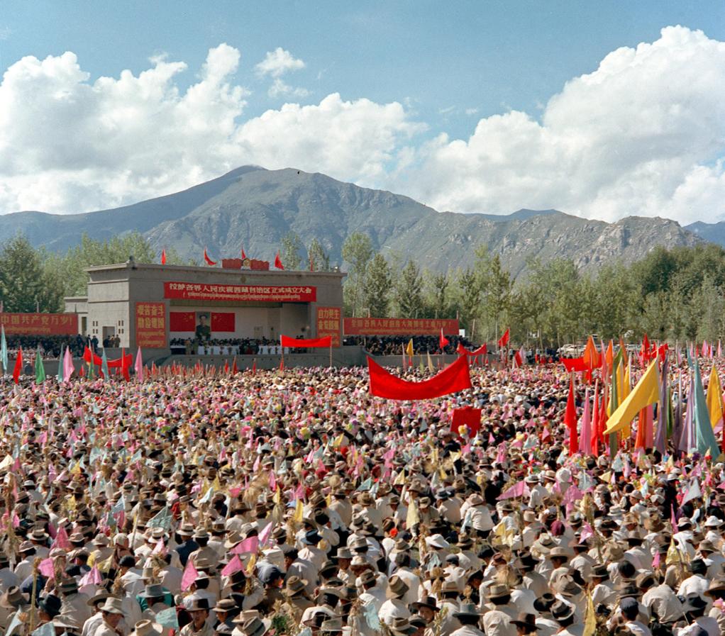 1965年9月,拉薩各界人民集會(huì),慶祝西藏自治區(qū)成立。新華社記者袁克忠攝