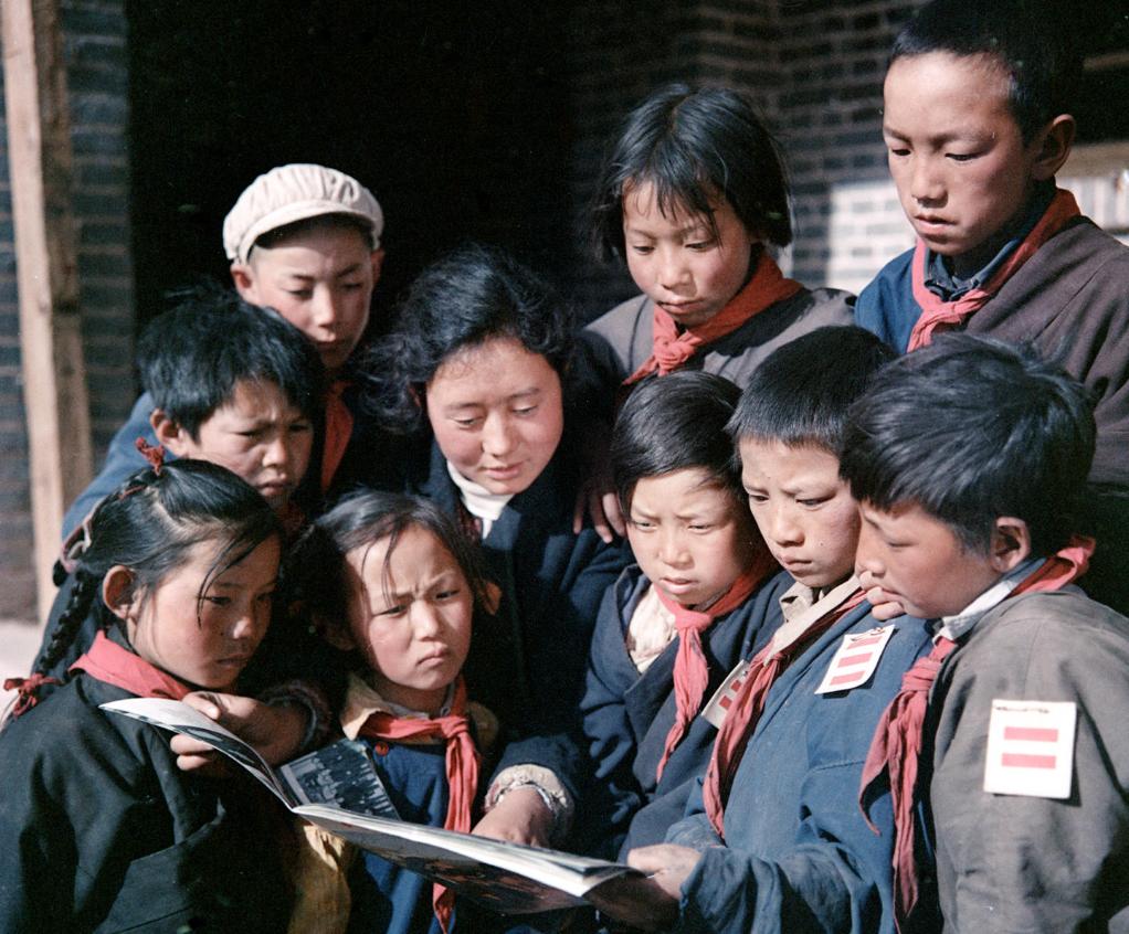 1965年9月,西藏昌都實(shí)驗(yàn)小學(xué)的老師和學(xué)生在看畫報(bào)。新華社記者 馬競(jìng)秋 攝