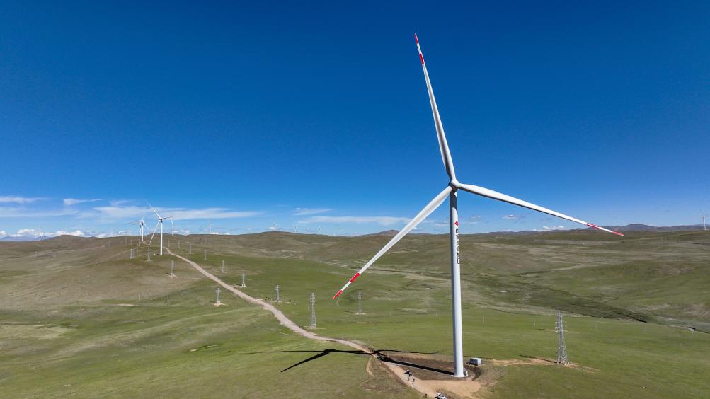 2025年7月17日拍攝的那曲市歐瑪亭嘎100兆瓦風(fēng)電場(chǎng)。新華社記者 晉美多吉 攝