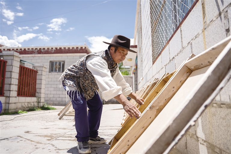 最初,藏紙制作技藝為格桑旦增帶來的收入并不高,但自1992年與自治區(qū)檔案館合作后,藏紙生意逐漸有了起色,這讓格桑旦增看到了藏紙的發(fā)展前景。2016年,格桑旦增成立尼木縣雪拉藏紙農(nóng)牧民合作社,這一決定不僅帶來了可觀的收入,更為周邊的農(nóng)牧民群眾提供了就業(yè)機(jī)會(huì),帶動(dòng)了當(dāng)?shù)卮迕裨鍪罩赂?。合作社成立后,格桑旦增不僅自己致力于藏紙制作,還積極收徒授藝。“我們合作社收入主要來源于藏紙售賣,每年收入約120萬元,其中70多萬元用于支付工人工資?!备裆5┰稣f。
