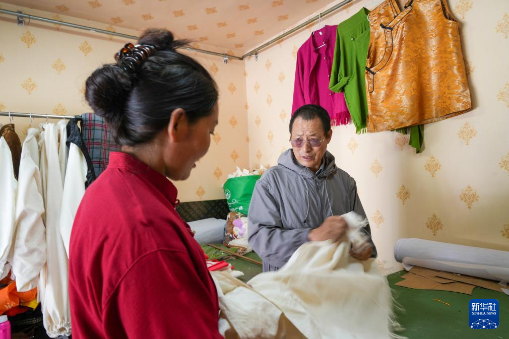 在拉薩城北的雪堆白傳統(tǒng)手工藝術(shù)學(xué)校里,今年60歲的洛桑麥朗正俯身指導(dǎo)兩名學(xué)生。洛桑麥朗于1965年生于昌都八宿縣,1983年,他赴拉薩系統(tǒng)研習(xí)服飾制作。“那時(shí)的藏裝款式單一,色彩也單調(diào)?!被貞浲?,老人語氣中滿是感慨。之后,洛桑麥朗在拉薩市堆龍德慶區(qū)的一所手工藝學(xué)校執(zhí)教。他教授學(xué)生拉薩服飾制作技藝的同時(shí),也虛心向來自安多、康巴等區(qū)域的學(xué)生請(qǐng)教當(dāng)?shù)夭匮b制作特色。這種博采眾長(zhǎng)的經(jīng)歷,讓他成為精通西藏全域服飾制作技藝的大師。2019年,洛桑麥朗被授予西藏自治區(qū)級(jí)非物質(zhì)文化遺產(chǎn)項(xiàng)目藏族服飾(拉薩服飾)代表性傳承人的稱號(hào)。2022年,他又被授予首屆拉薩市工藝美術(shù)大師稱號(hào)。他編撰的漢藏雙語《民族服裝制作》,也成為藏裝制作從業(yè)者的重要教材。