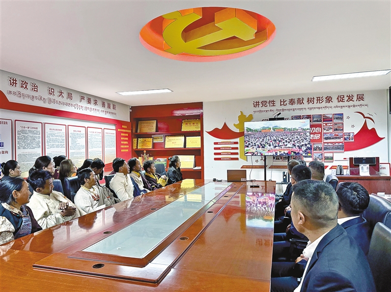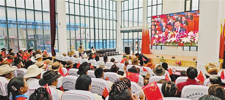 日喀則市謝通門縣仁欽則鄉(xiāng)倫珠孜村的村民們集中觀看了現(xiàn)場直播,現(xiàn)場不時傳出熱烈掌聲。老黨員仁增多吉感慨萬千:“我深切體會到了沒有中國共產(chǎn)黨就沒有社會主義新西藏,就沒有我們今天的幸福生活。我將始終維護祖國統(tǒng)一,加強民族團結,堅定不移聽黨話、矢志不渝跟黨走?!?/p>